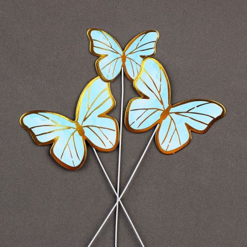Набор топперов для украшения торта "Бабочки" (голубые,с веточками),9496636