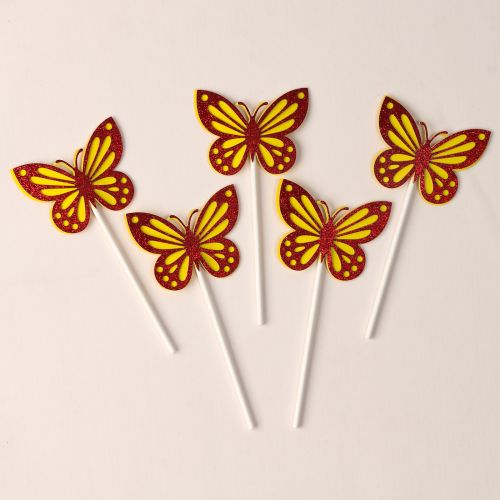 Набор топперов для украшения торта "Бабочки" (красный), 5шт, 10092484