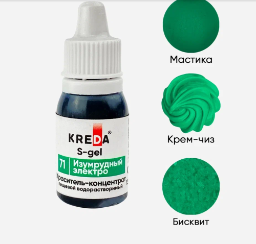 Краситель гелев.пищ.синтетич. S.71-0,01 "Kreda" *ИЗУМРУДНЫЙ ЭЛЕКТРО*,(бут.10мг)