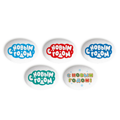 Сахарные фигурки "Медальоны Новый год надписи" 35х25мм (63шт), 98560