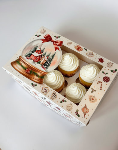 Упаковка на 6 капкейков моноблок с окном "Новогодний подарок"КУ-933 (250814)