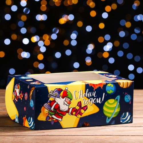 Упаковка на 6 капкейк. гофрокартон "Космический Новый год" с окном, (25*17*10).(уп.100шт), 21843