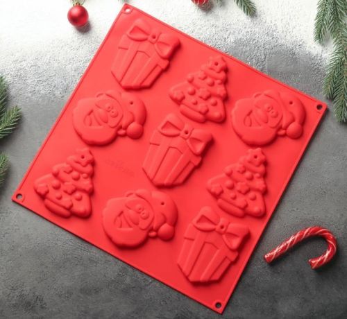 Форма силикон.для шоколада и выпечки "Подарки под елкой"3D,9ячеек,30х30х1см,4324203