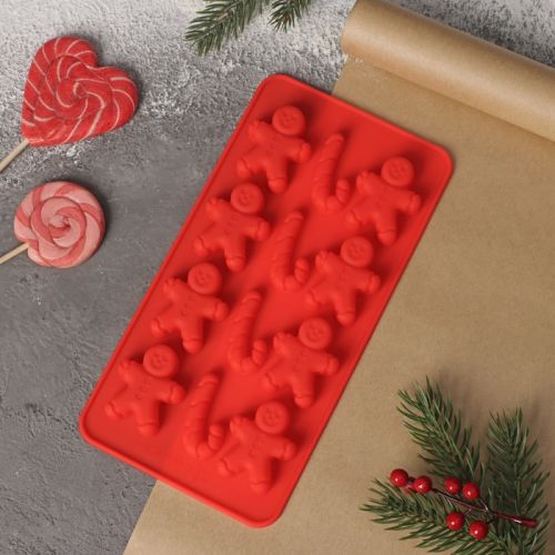 Форма д/льда и шоколада 12 ячеек 3,5х3,5см "Карамельное чудо",(прян.человек и трость) , 3628353