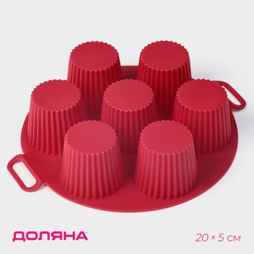 Форма силиконовая для кексов "Рифленый круг" 7 ячеек, 20х20х5см (5,5х5см), 5159, 10622144
